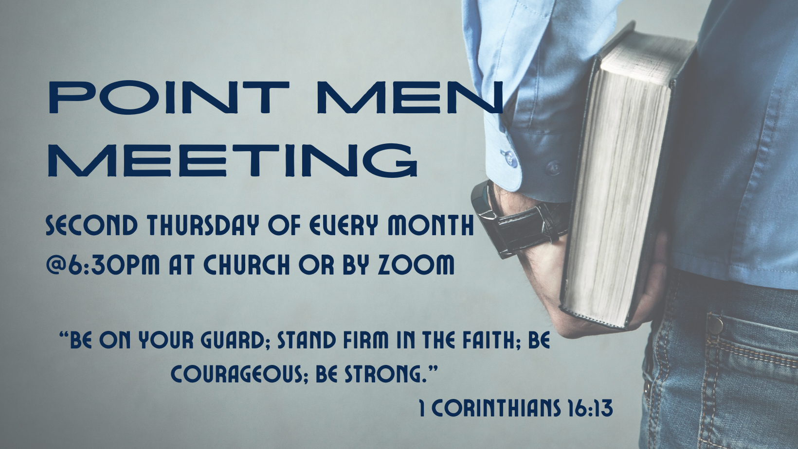 Men! Join us on the second Thursday of each month at 6:30pm to enjoy some food, fellowship, and discussion time in His word! This is a great time to grow in your relationship with God and your brothers in Christ. If you cannot join us in person, you can join from home through this ZOOM… |