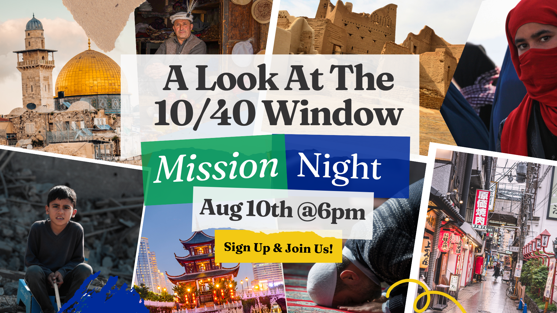 What is the 10/40 Window? Often called "The Resistant Belt", the 10/40 Window includes the majority of the world's Muslims, Hindus, and Buddhists in the area of North Africa, the Middle East and Asia approximately between 10 degrees north and 40 degrees north latitude. Join us for a fun and informational evening, hosted by our…
