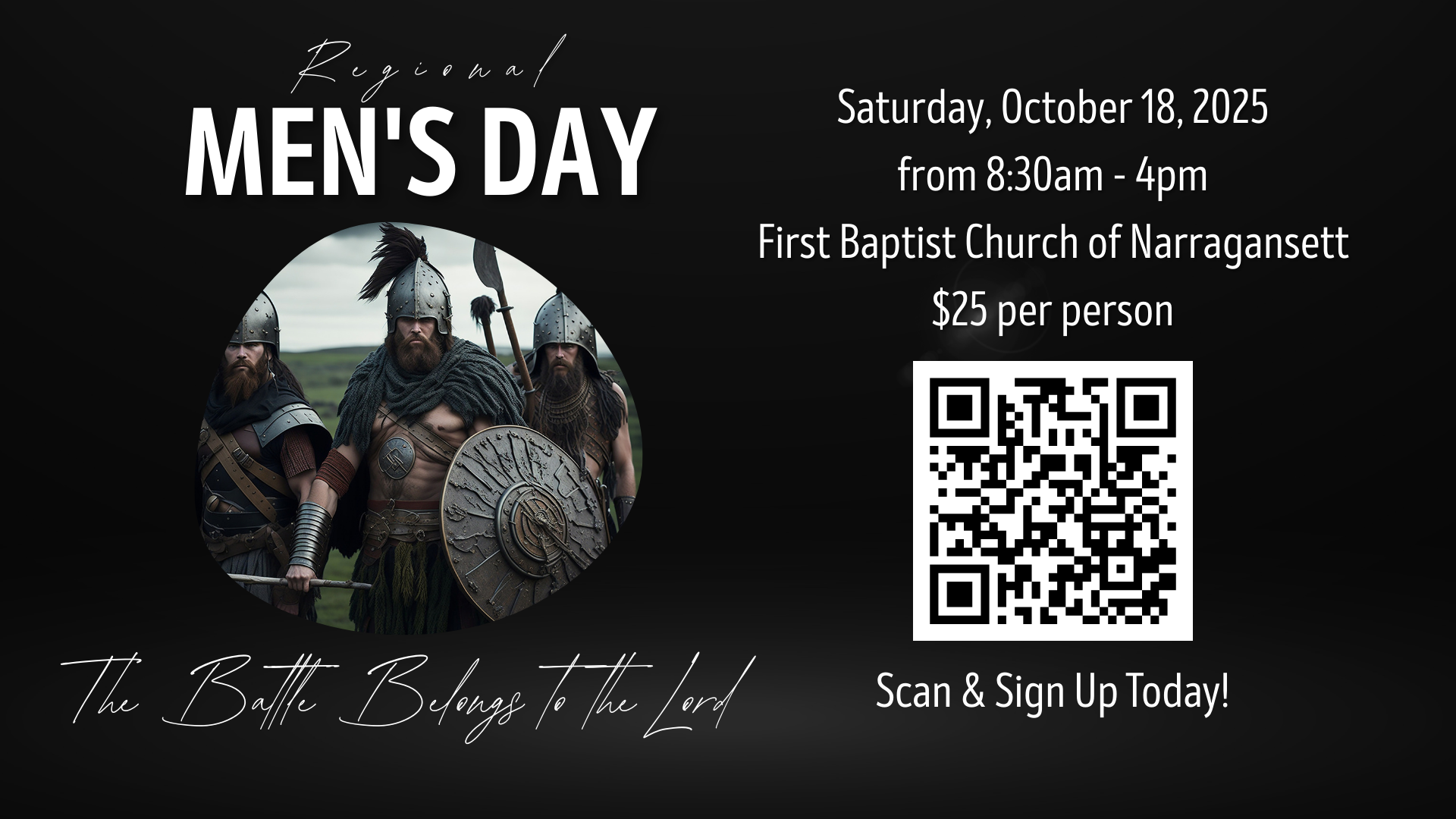 Men come and join your brothers in Christ from both LHCC as well as other EMF Churches at the annual EMF Regional Men's Day Saturday, October 18th from 8:30am - 4pm First Baptist Church of Narragansett Cost is $25 per person and includes breakfast & lunch The theme this year is "The Battle Belongs to…